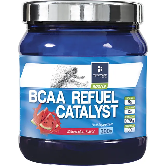 Το συμπλήρωμα διατροφής My Elements BCAA Refuel Catalyst Watermelon Flavour περιέχει Αμινοξέα Διακλαδισμένης Αλύσου ή BCAAs (Branched Chain Amino Acids) που είναι η L-λευκίνη, η L-ισολευκίνη και η L-βαλίνη. Αποτελούν μεγάλο μέρος του μυικού ιστού και μπορεί να χρησιμοποιηθούν για την επιδιόρθωση, ανάπτυξη και αποκατάστασή των μυών μετά από την άσκηση.