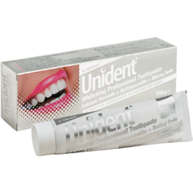 Unident Whitening Professional Toothpaste Η UNIDENT® Whitening Professional Toothpaste είναι μια λευκαντική οδοντόπαστα ειδικά σχεδιασμένη για καθημερινή χρήση, καθώς περιέχει ασφαλείς λευκαντικούς παράγοντες, οι οποίοι επαναφέρουν και διατηρούν το φυσικ