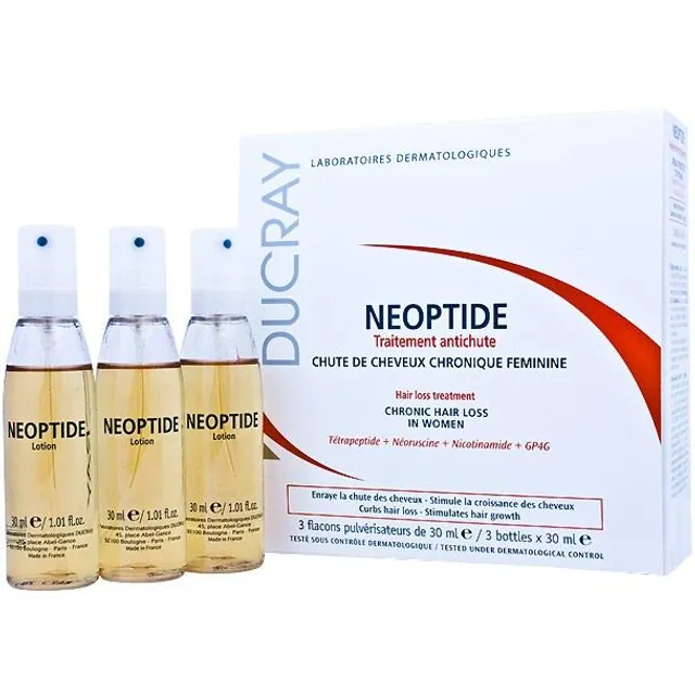 Χάρη στη στοχευμένη της δράση στη φάση της ανάπτυξης της τρίχας στις γυναίκες, αυτή η διεγερτική λοσιόν σταματάει την τριχόπτωση και διεγείρει την ανάπτυξη. Η ελαφριά της υφή επιτρέπει καθημερινή χρήση χωρίς να λιπαίνει τα μαλλιά. Επιπλέον, η Neoptide δεν πρέπει να ξεπλένεται.