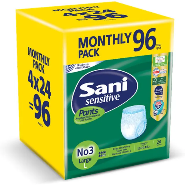 Τα ελαστικά εσώρουχα ακράτειας Sani Pants είναι ειδικά σχεδιασμένα για να προσφέρουν αποτελεσματική προστασία από διαρροές και οσμές, διακριτικότητα και φιλικότητα για το δέρμα. Με ειδική τεχνολογία Odour Control στον πυρήνα, για αποδεδειγμένο περιορ …